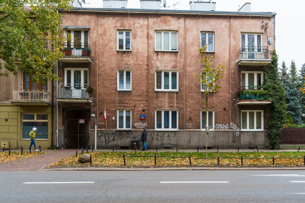 W połowie lat 30. XX w., na świeżo zabudowującym się wówczas przedmieściu grochowskim nie było większego kłopotu z terenem, a i czasy zmieniły się na tyle, że nie planowano już prawie wcale w takich miejscach jak to, tylnych oficyn (w szczególności mieszkalnych). Budynek jest więc pozbawiony zabudowy podwórzowej. Zaprojektowany jako pięcioosiowy, fasadę ma ożywioną jedynie trzema ryzalitami i dwoma pionami balkonów na jej skrajach. Balkony posiadają oryginalne, nitowane balustrady z epoki. Od strony ulicy, w przyziemiu, spod powojennych nawarstwień żwirkowej okładziny wyłaniają się pierwotne tynki szlachetne. Przejazd bramny umieszczony niesymetrycznie, w północnej części obiektu, służy tylko do komunikacji z zapleczem kamienicy. Drzwi na klatkę schodową wiodą natomiast bezpośrednio z podwórza. Elewacja tylna (wschodnia) pozostaje zupełnie gładka. Klatka została opracowana raczej skromnie; o prostej nitowanej balustradzie schodów, lastrikowych stopniach z takimiż płytkami na piętrach i spocznikach. Parapety przy spocznikach – drewniane. Budynek zdaje się czekać na remont. Współczesną modernizację zaczęto, jak to zwykle bywa od dachu, który wymieniono na przełomie 2015 i 2016 r.