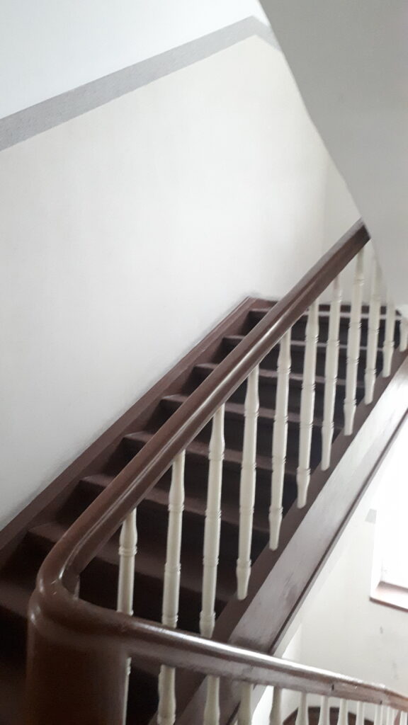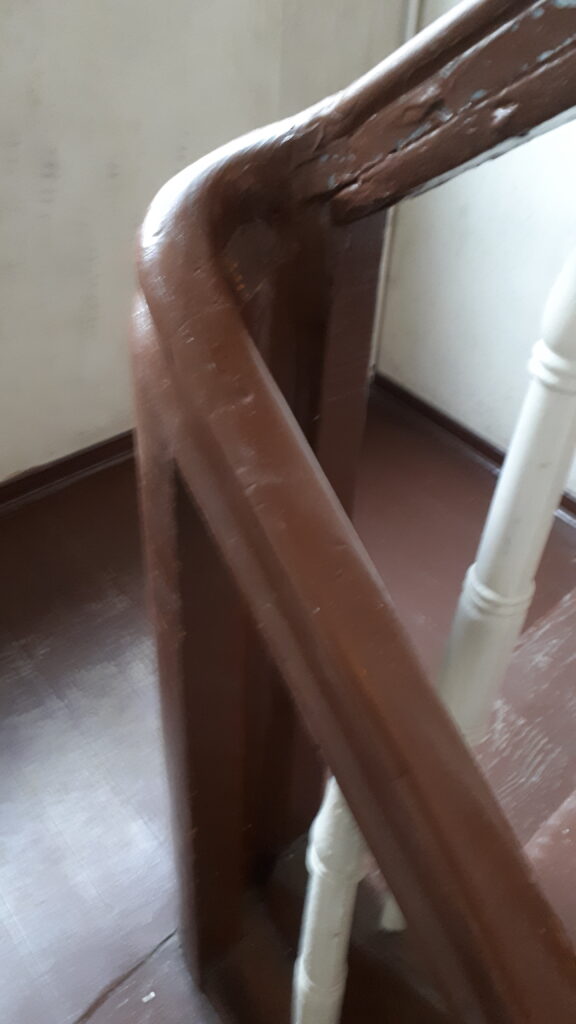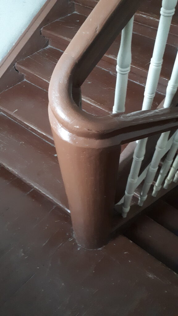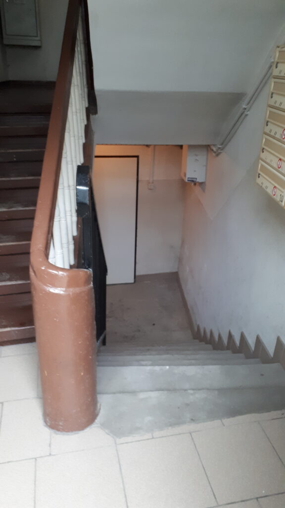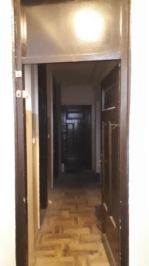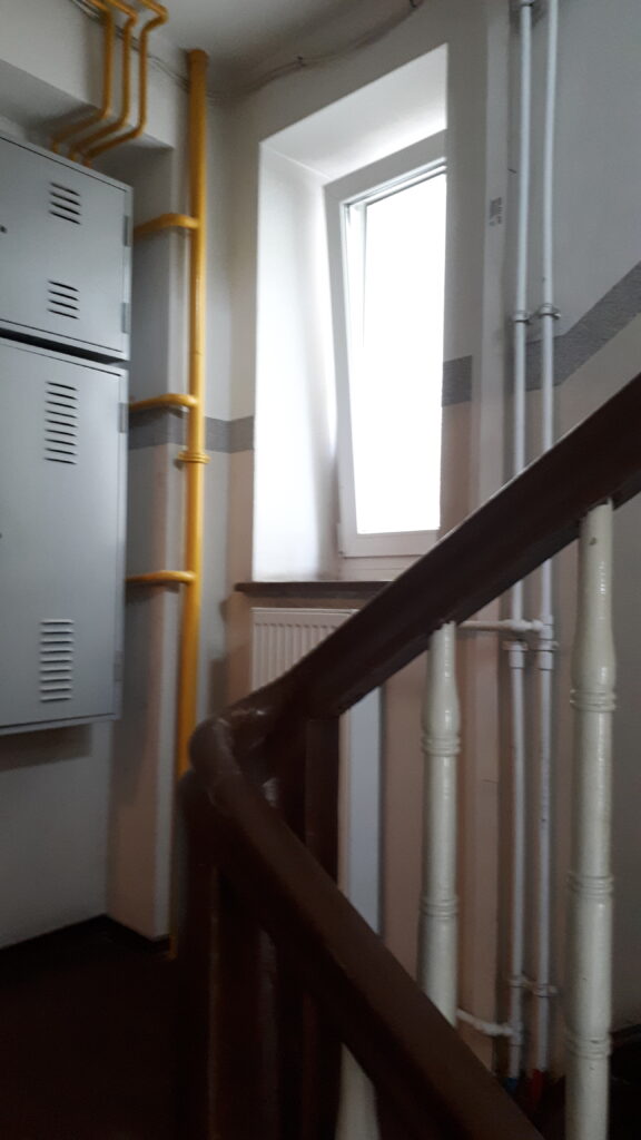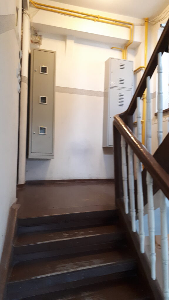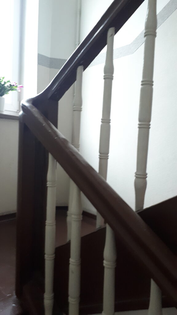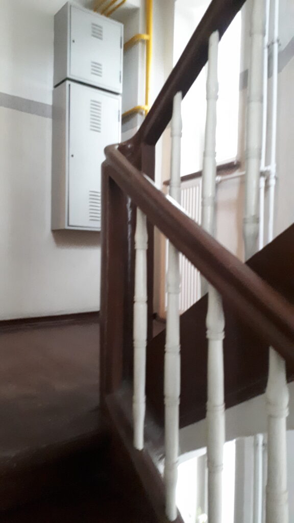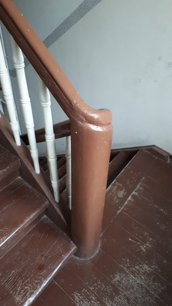 Swoje „robotnicze” przeznaczenie budynek potwierdza też wewnątrz. Zarówno schody, jak i podesty są drewniane, mimo, że posadowione na stropach Kleina, były wówczas raczej synonimem obiektów mniej ekskluzywnych. Na piętrach są po trzy mieszkania i pomieszczenie wspólnej toalety – dziś zapewne adaptowanej na schowek/komórkę.
