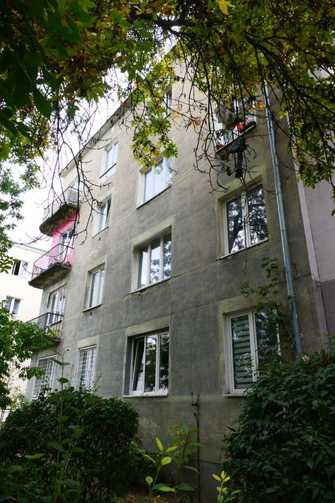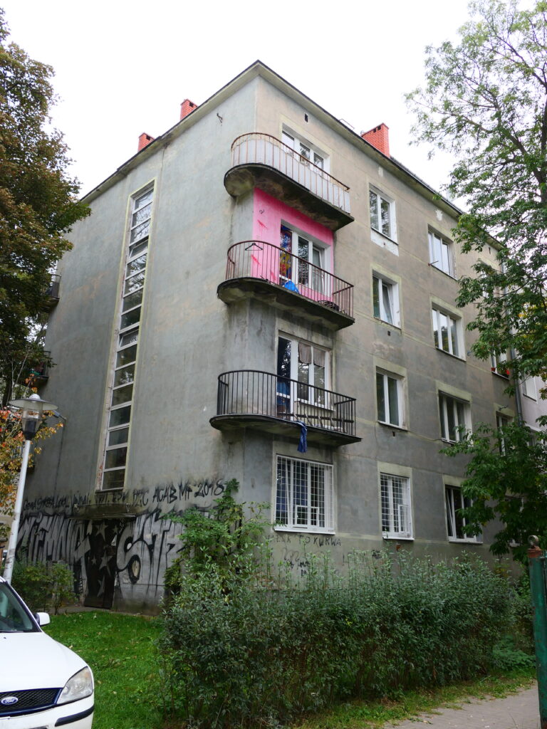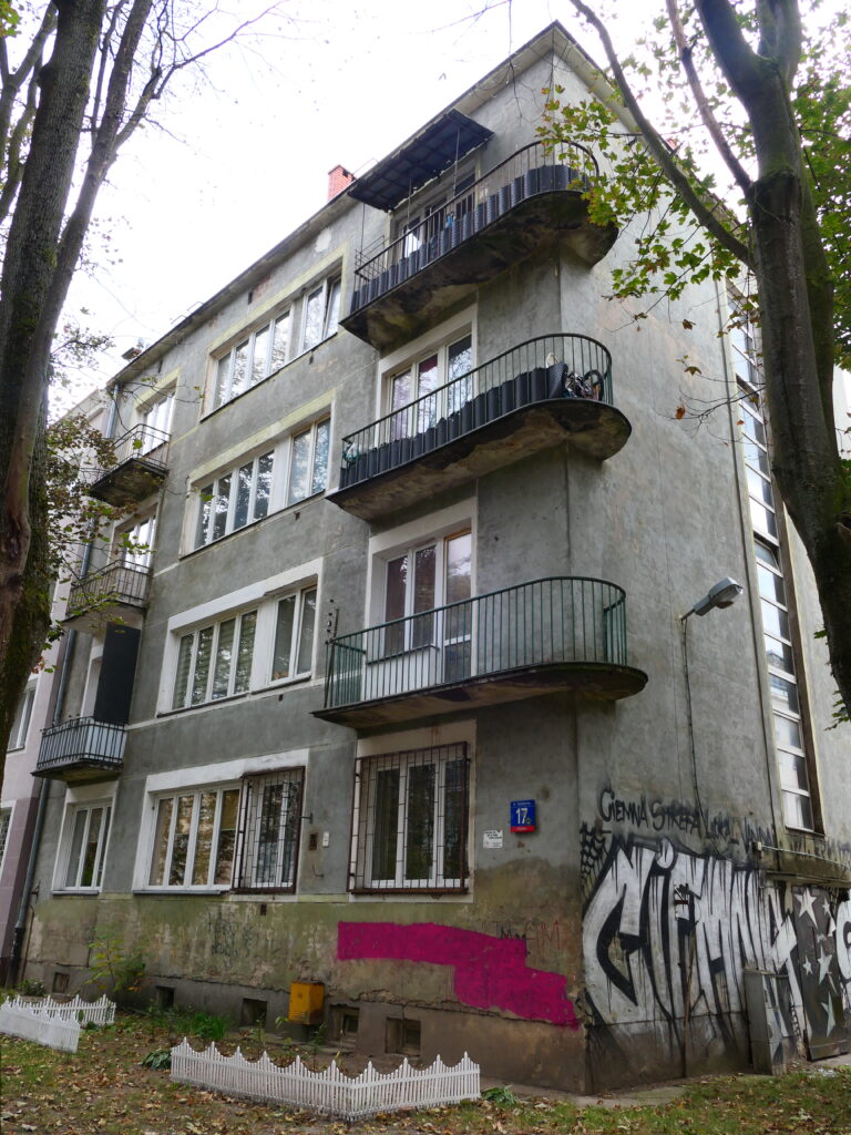 Odtąd przedmieścia przestawały być nastygmatyzowane biedą, zacofaniem i brudem. Mniej lub bardziej je rozplanowywano, ale nawet tam gdzie nie było jasno wytyczonych, szeroko zakrojonych wizji, powstająca zabudowa również trzymała o wiele lepsze standardy, niż w czasach carskich. Tak było i w przypadku opisywanego tu domu, pod obecnym adresem Szlenkierów 17, o charakterystycznych balkonach nawiązujących do tak modnego podówczas stylu okrętowego z zakręconą za róg bryły balustradą. Wejście na klatkę zaprojektowano od północy dzięki czemu budynek miał tylko jedną ślepą ścianę, przygotowaną na kontynuację zwartej pierzei domów w kierunku południowym. Po przeciwnej stronie ulicy stanął bardzo podobny gabarytowo budynek, wykończony jednak i komunikacyjnie rozwiązany zupełnie inaczej. Oba obiekty stanowiły zalążek przyszłej ulicy, która jak się okazało, w pełni uformowała się dopiero w jakiś czas po wojnie.